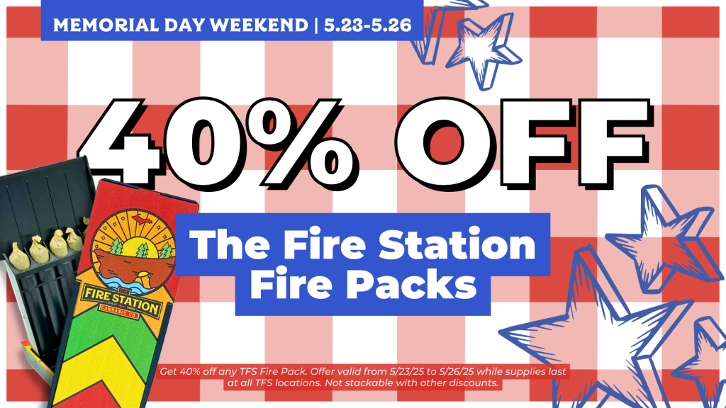 Get 40% off any TFS Fire Pack. Offer valid from 5/23/25 to 5/26/25 while supplies last at all TFS locations. Not stackable with other discounts.